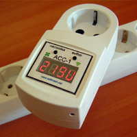 - Конструктивно устройство выполнено в виде сквозной розетки с цифро-символьным индикатором.